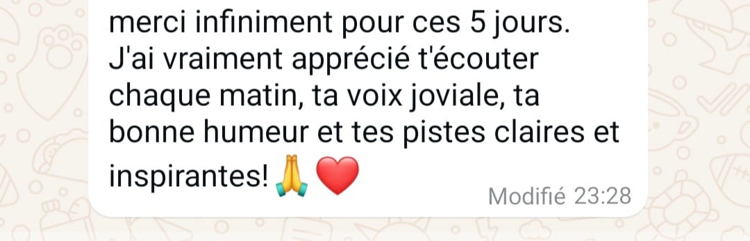Je serai présente chaque jour sur le groupe WhatsApp pour :